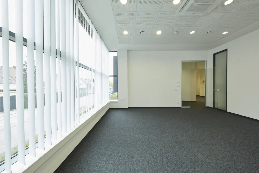 Diese ca. 85 m² große Fläche umfasst zwei gut geschnittene Räume mit Teppichboden und eignet sich ideal für Unternehmen, die auf kompakter Fläche strukturiert arbeiten möchten. Der Grundriss bietet eine klare Trennung von Arbeitsbereichen, zum Beispiel für zwei Büros oder Büro und Besprechung.
